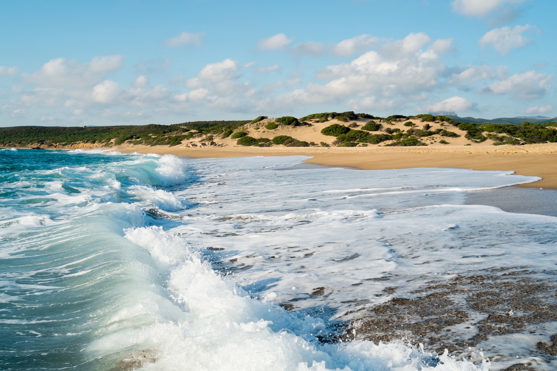Infatti ritroverete oltre 50Km di spiagge, appartenenti alla Costa Verde. Una di queste è la spiaggia di Piscinas. L’unico deserto di tutto Europa, che parte dalle montagne di sabbia, fino ad arrivare al mare, dove in molti si avventurano nel fare surf nelle altissime onde portate dal vento. Per i pochi fortunati è possibile vedere il cervo sardo.